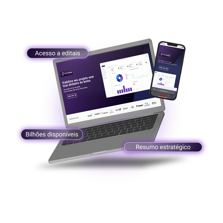 A FS Funding é uma plataforma que concentra e organiza os principais editais de fomento à inovação do Brasil, permitindo que você encontre oportunidades alinhadas ao seu projeto de forma rápida e eficiente.